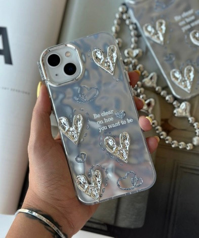 قاب گوشی آیفون مدل قلبی سیلور Silver Heart