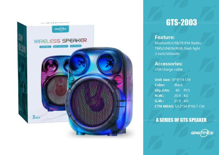 همچنین اسپیکر GTS-2003 3inch را می توان از طریق بلوتوث به تمامی دستگاه های مجهز به بلوتوث وصل نمود و از طریق آن ها صوت مورد نظر، از موسیقی گرفته تا کتاب صوتی را پخش کرد.